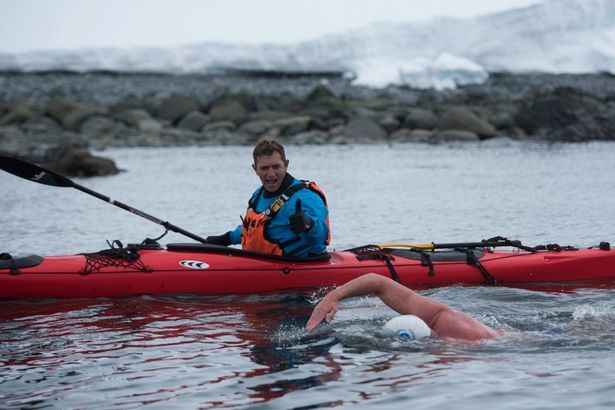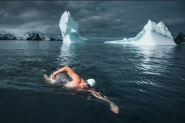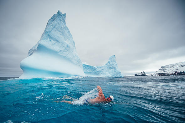运动员南极冰水中游泳 呼吁环保